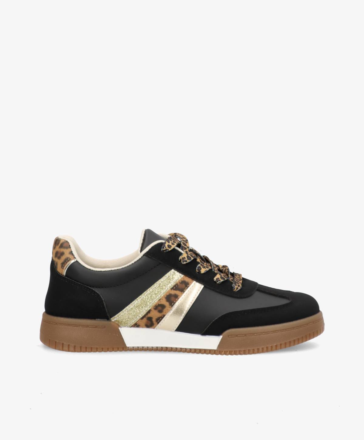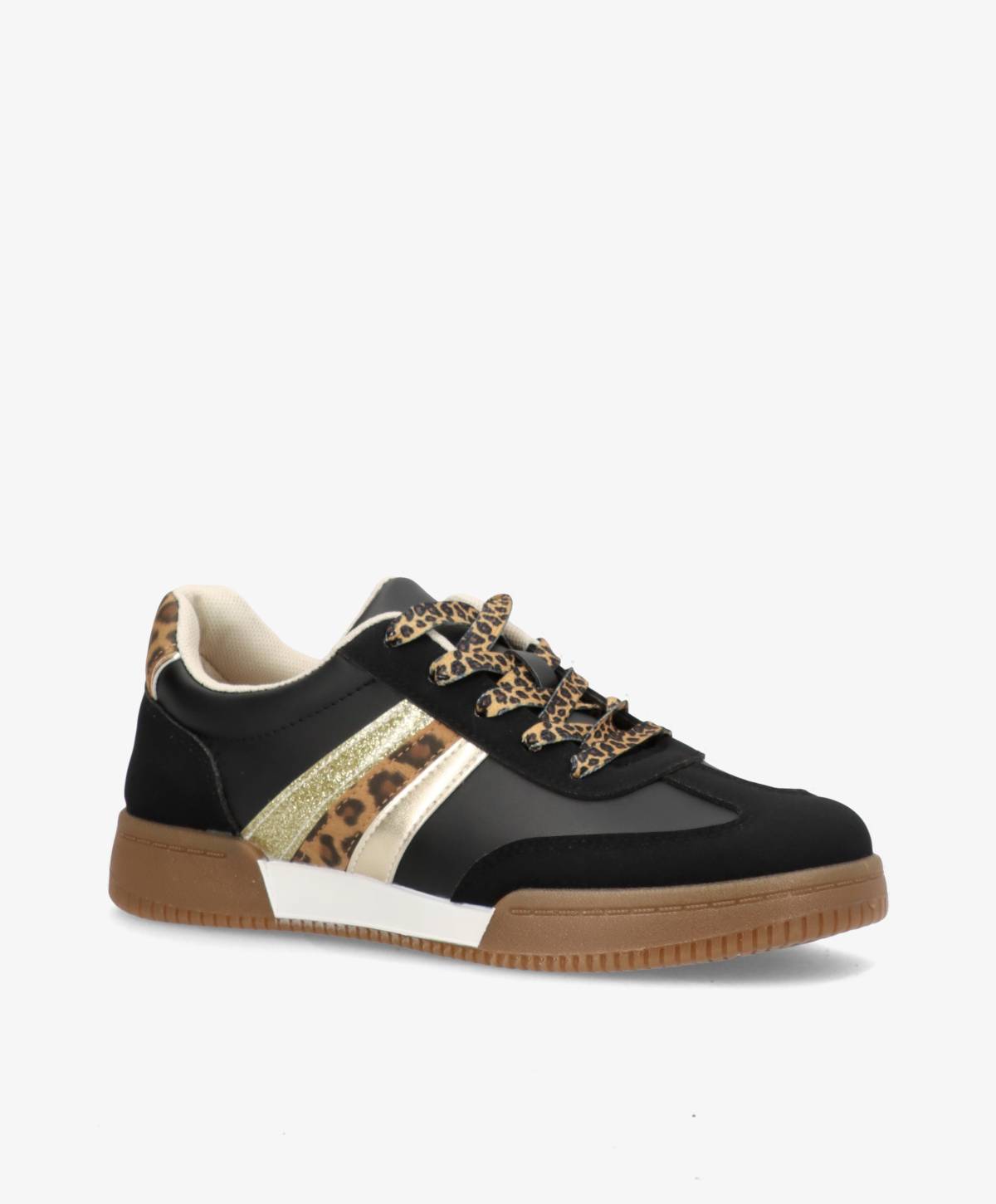 TESSA fra Claudia Ghizzani er til dig, der vil have både komfort og blikfang i én og samme sneaker. Det sorte look kombineres med leopardprint, metalliske detaljer og glitter, der giver skoen en modig og feminin karakter. Perfekt til dig, der elsker at skille dig ud – også på en mandag.