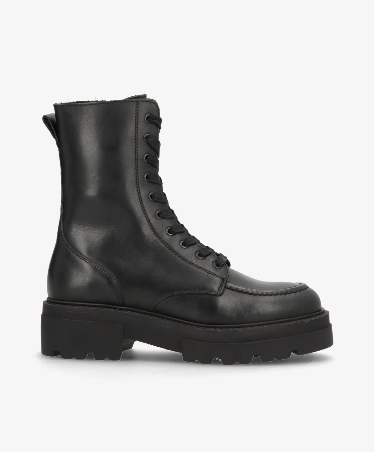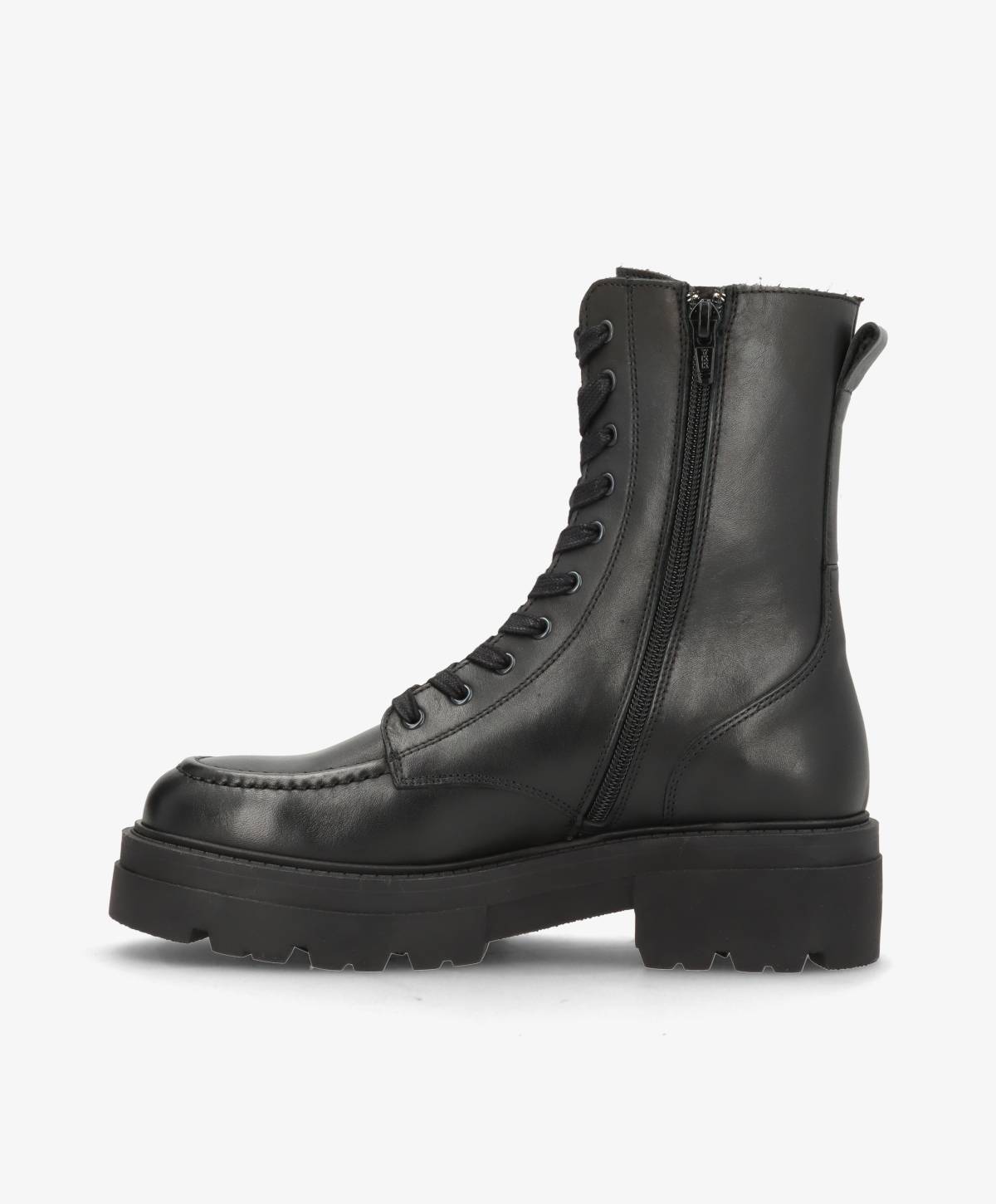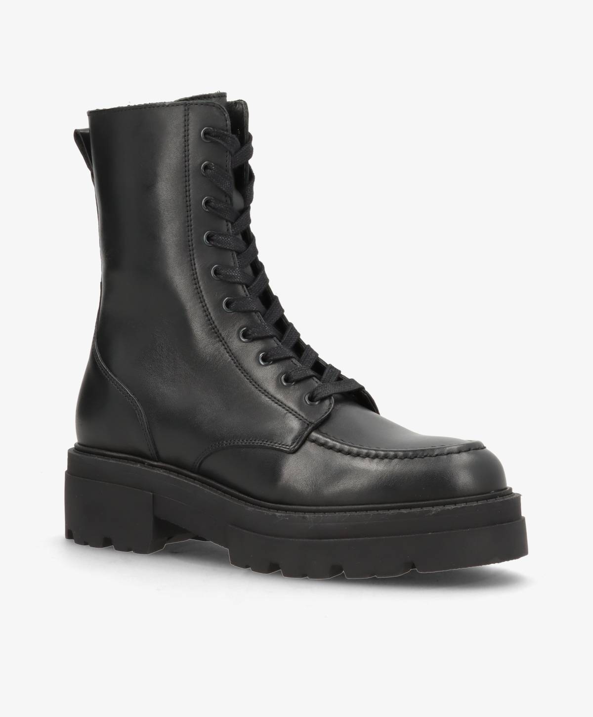 VALLEY i sort læder fra Shoedesign Copenhagen er en støvle, der kombinerer moderne stil med høj komfort og funktionalitet. Det glatte, håndlavede læder har en eksklusiv finish, og den solide ydersål i gummi sikrer stabilitet og et godt greb på alle underlag. Med snørelukning og praktisk lynlås på indersiden får du både fleksibilitet og nem adgang.