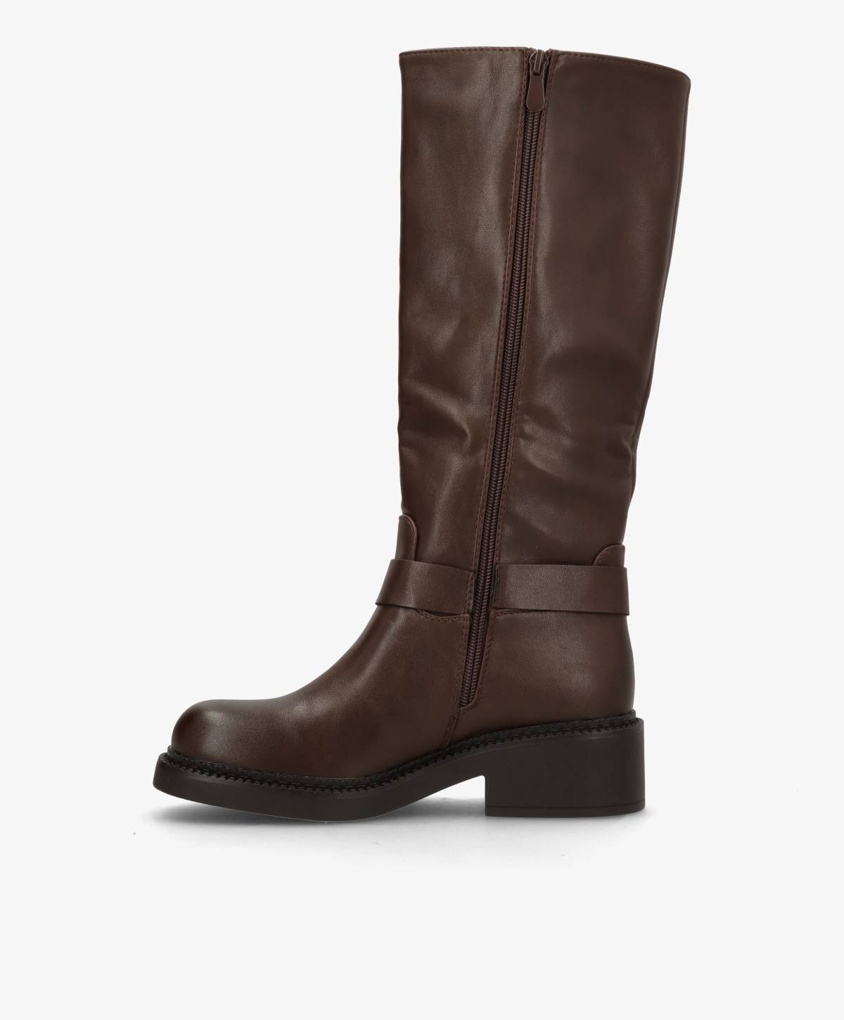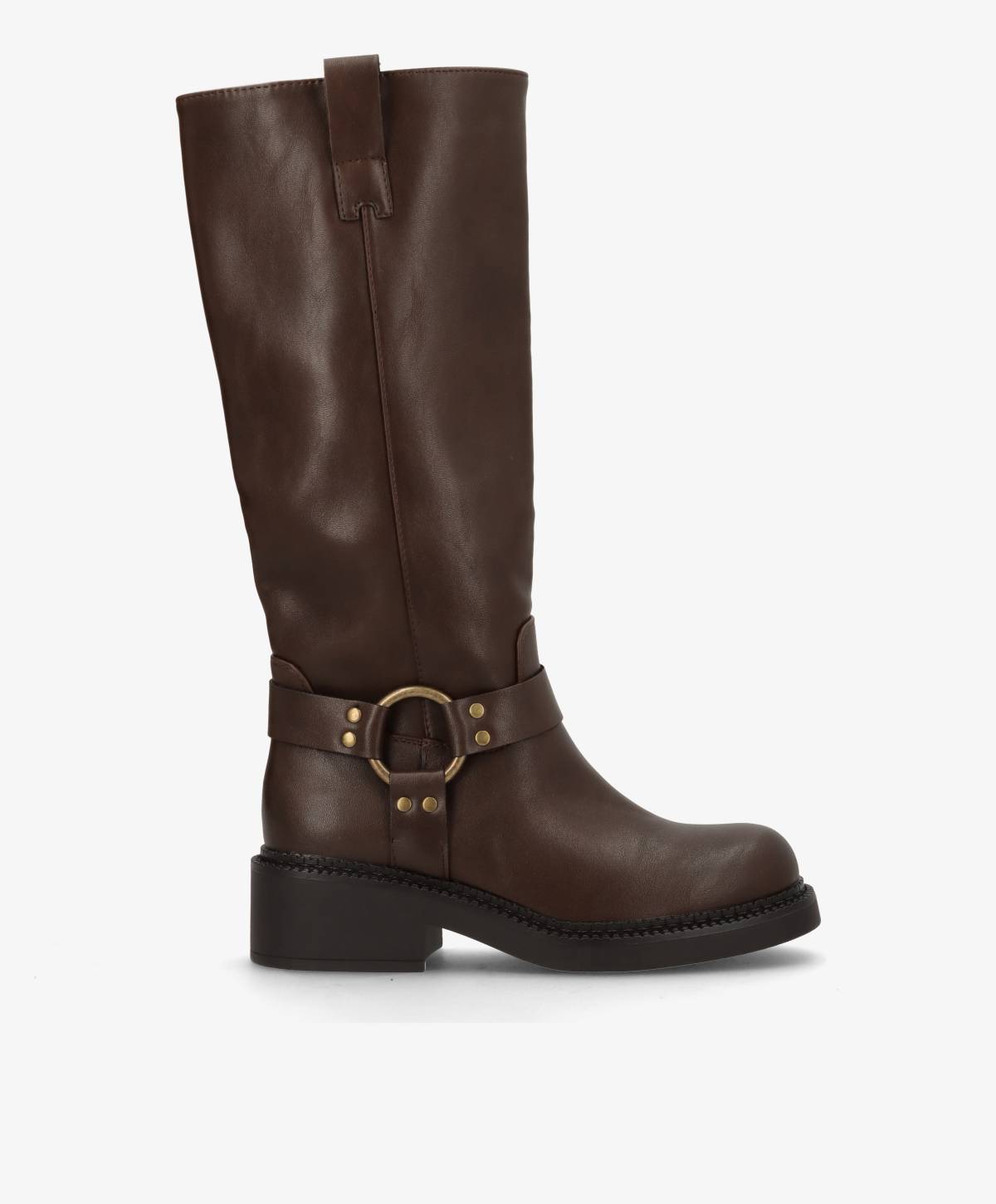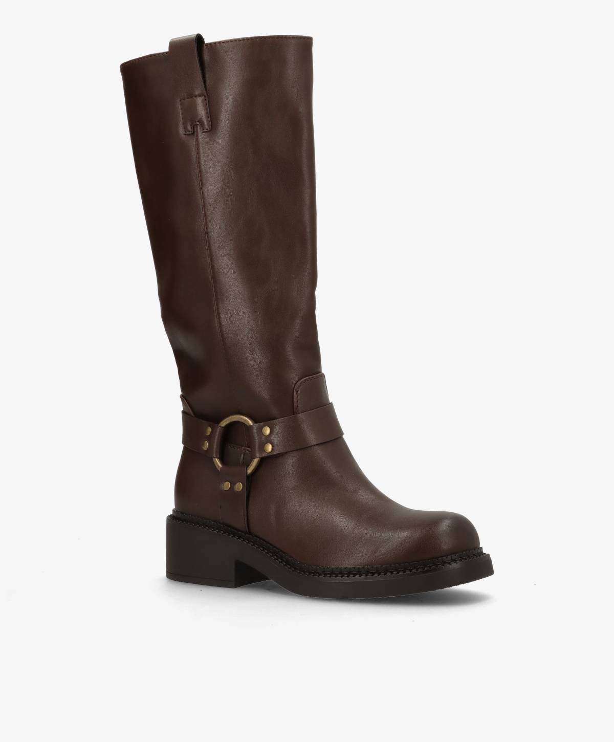 Her får du en lang brun støvle, der kombinerer varm farvetone, klassiske detaljer og komfort til hverdagen. YAS LQ-137 i brun er skabt med en elegant biker-inspireret rem og messingfarvede metalnitter, der giver et moderne og eksklusivt udtryk. Den brede hæl og stabile sål gør støvlen ideel til både travle dage og outfits, der kræver lidt ekstra kant.